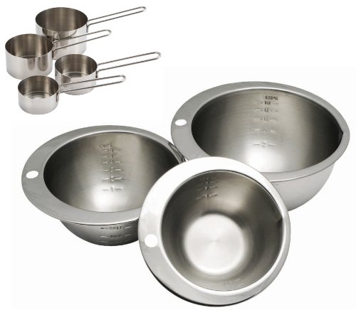 Cybrtrayd 7-Piece Chocolatier's Stainless Steel Measuring Bowl and Cup Set