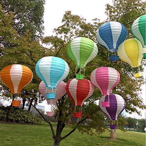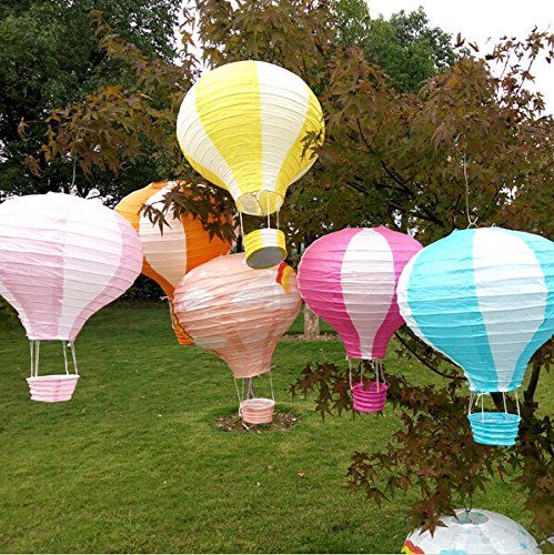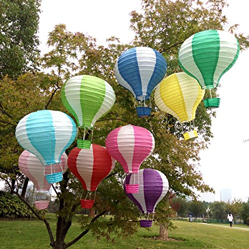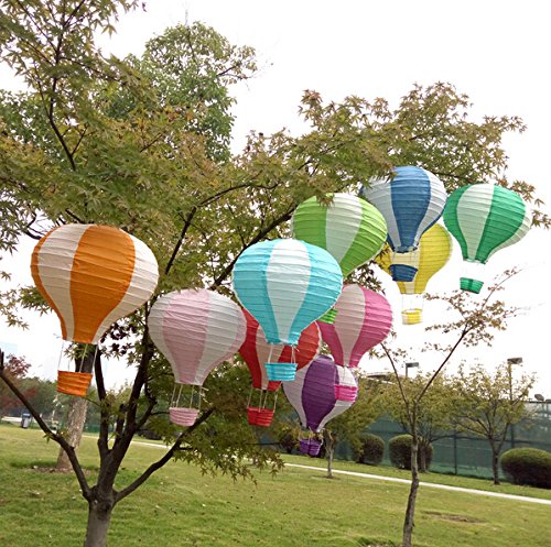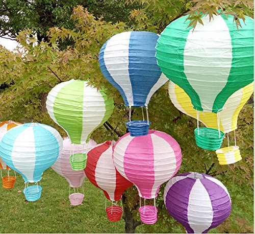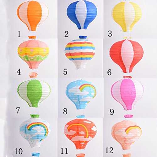 Joinwin 12 Inch Hanging Wedding Rainbow Hot Air Balloon Paper Lantern Party Decorations, Pack of 5 Pieces (Mix Design and Color)