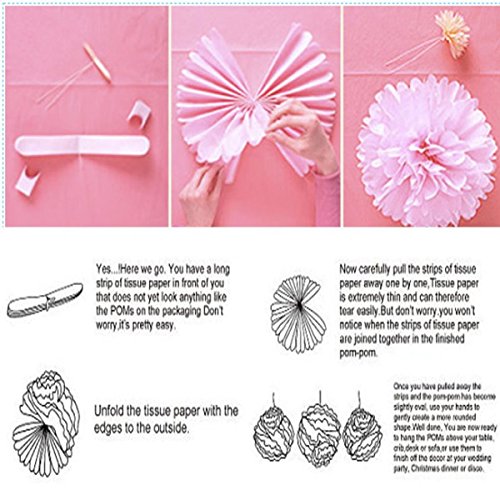 Kubert® 12 Pack Mixed 8" 10" 14" Sizes New design DIY Tissue Paper Pom-poms Flower Ball Hanging decoration pom poms / Tissue Paper Flower Ball Pom-poms For Birthday Party Baby Room Nursery Decoration - Pom Poms Ball Blooms Tissue Paper Flowers - Celebrati