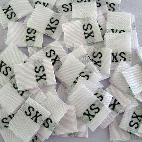 Size XS (Extra Small) Woven Clothing Size Tags (Pkg of 100)