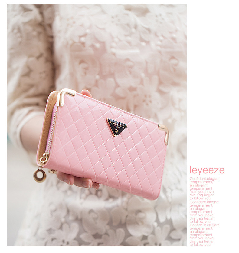 新款女士钱包女长款日韩潮拉链菱格多功能手机包女手拿零钱包