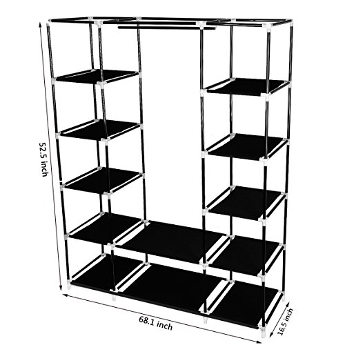 HBlife Portable Clothes Closet Wardrobe Non-woven Fabric Organizer Storage Shelves with Curtain