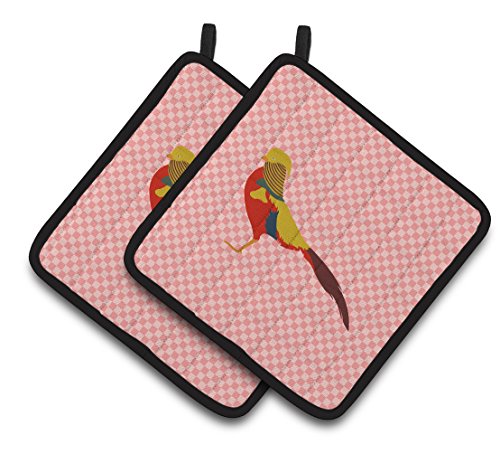 Caroline's Treasures BB7928PTHD Golden Or Chinese Pheasant Pink Check Decorated Pot Holder, 7.5" x 7.5", Multicolor
