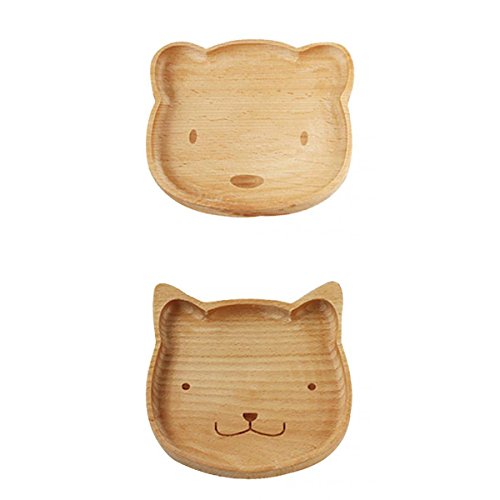 Ideal for self-feeding, with easy-scoop bowls and a divider plate to keep your baby's food separate. This new divided plate can extend their imagination with colorful characters without distracting them. Beautiful pattern can attract kids to eat more easily at mealtimes,so the parent do not worry about their children eat less. Besides that , it can be also widely used as gift , cookies snacks serving plate for your home , hotel , restaurant and so on . Specification: Material: Wood Color: Wood Color Size: Approx. 15.5x14cm/6.10x5.51inch Package Includes: 1 piece Wooden Bear Kids Plate 1 piece Wooden Cat Kids Plate