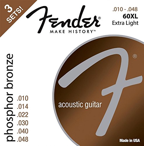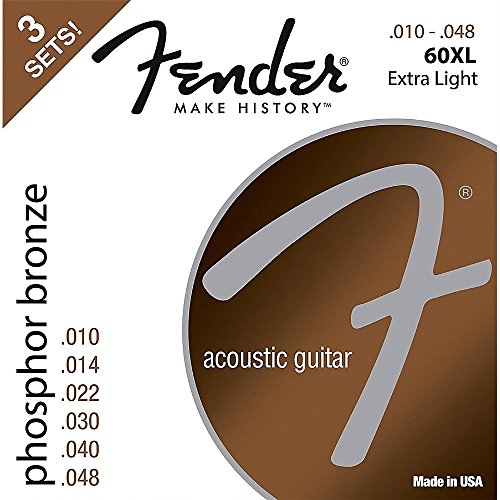 Fender 60XL Phosphore Bronze Acoustic Guitar Strings 3-Pack Extra Light Gauge 10-48