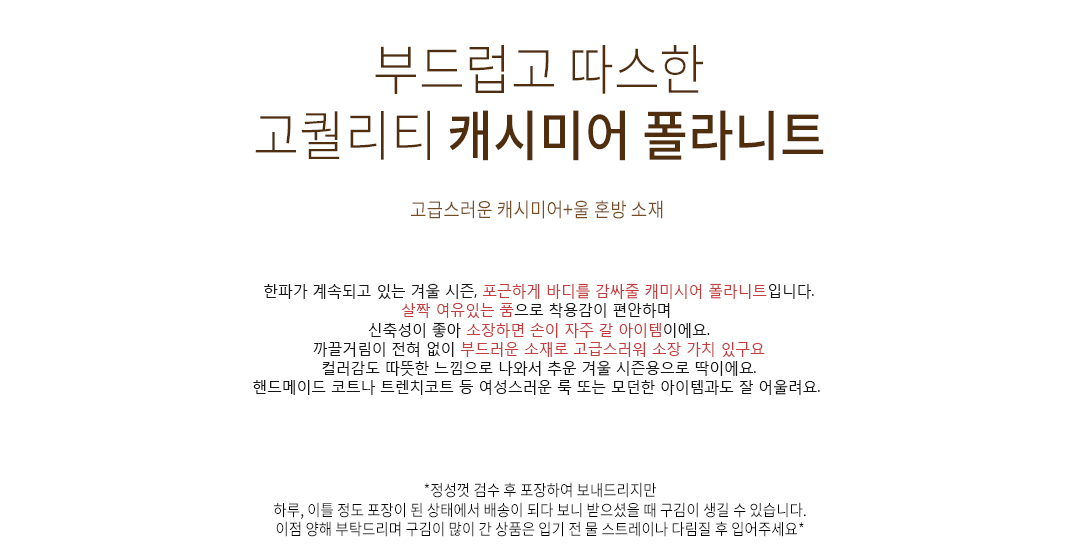 | 소재(Material) | 울(wool/)60%+나일론(nylon/)30%+캐시미어(cashmere/)10% |