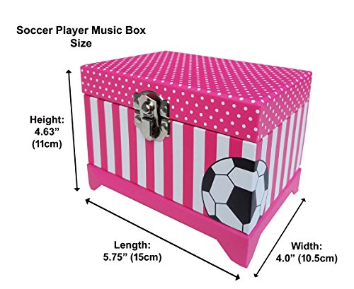 Studio : My Tiny Treasures Box Company Publisher : My Tiny Treasures Box Company Binding : Kitchen Product Description Your special soccer star needs a place for her special treasures, and this special box is just the thing! Young girls have lots of necklaces, rings, earrings and hair accessories. This box allows your girl to keep her special jewelry and accessories organized in their individual compartments. The 'Just Like Me' musical jewelry box is a unique gift for your young athlete that will bring hours of fun as they imagine they are the figurine spinning to music. Tiny earrings and rings fit comfortably in the ribbed area. Larger items including children's watches, necklaces and bracelets can be placed in the larger, open area. The box is constructed with durable, rigid 900gsm cardboard. Includes a glass mirror and ribbon connected lid. Snaps closed with a silver-colored metal latch. When wound, the hand painted soccer player ornament slowly spins and 'Swan Lake' by Tchaikovsky plays. Warning: Choking hazard. Includes small pieces. Not appropriate for children under 3 years of age. My Tiny Treasures Box Company is the ONLY place you can get this gift that is unique as your special athlete. 0