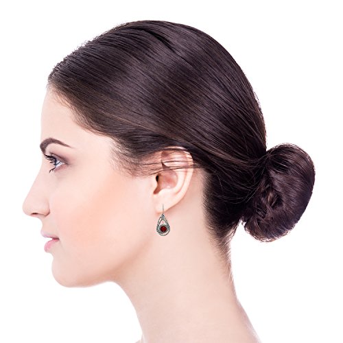 Vintage Style Ornate Teardrop Earrings with 6 mm Round Cabochon Genuine Carnelian Gemstone and Measuring About 3/4" or 2.2 cm in Length
