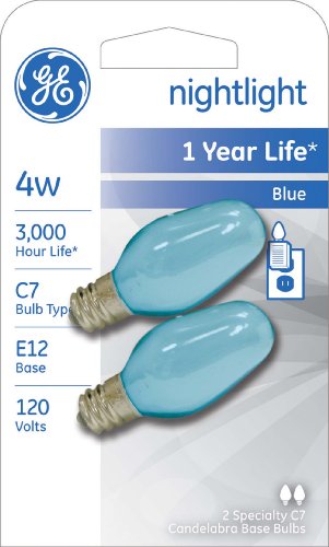GE Lighting 26223 4-Watt Specialty C7 Incandescent Light Bulb, Blue, 2-Pack