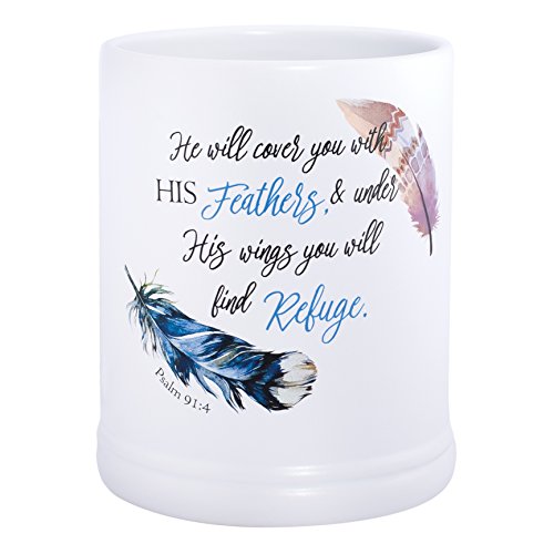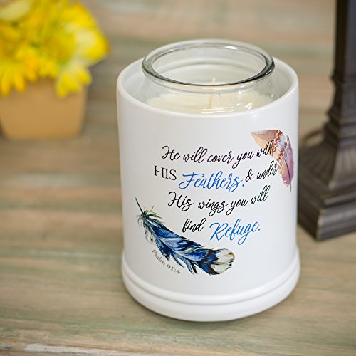 Refuge Under His Wings Feathers Psalm 91:4 White Ceramic Stone Jar Warmer