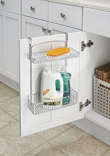 SPACE SAVER: Kitchens can easily become cluttered with an array of different products, but this metal hanging basket is sturdy and large enough to reduce the clutter and keep those items all neatly together in one spot. Features a shallow top shelf for smaller items and a deeper bottom basket for larger supplies.