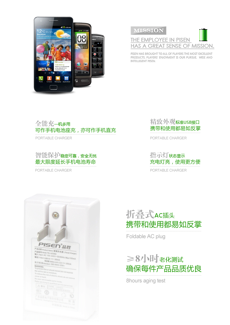 品胜智能手机充电器(商务之星)