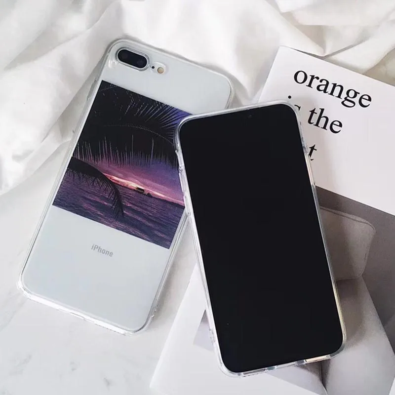 Features:Vintage Scenery illustration Clear Phone Cases