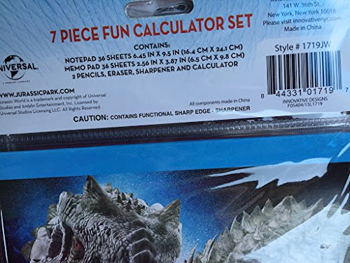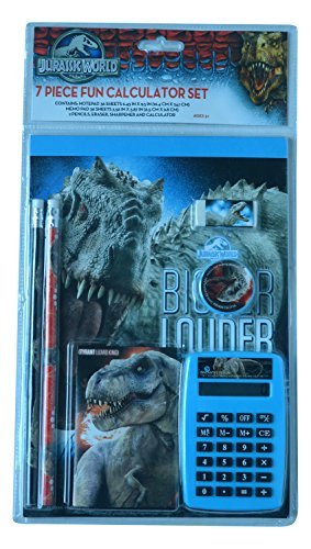 Jurassic World 7 Piece Fun Calculator Set includes Notepad ,Memo Pad ,Eraser, Sharpener, Calculator and 2 Pencils