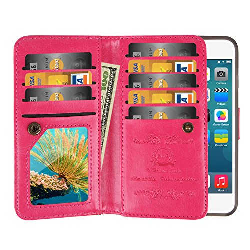 iPhone 6S Case / iPhone 6 Case, Mouselemur Premium PU Leather Flip Folio Wallet Case with Credit Card Holder [9 card slots] and Magnetic Detachable Slim Cover for iPhone 6/6S (4.7") Rose