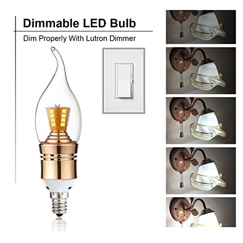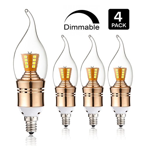 Leools E12 Dimmable LED Bulbs,9W LED Candelabra Light Bulbs 75 Watt Equivalent, 800lm, Daylight White 6000K LED Chandelier Bulbs, Decorative Candle Base E12 LED Lamp, (Flame Shape 4 Pack)