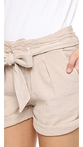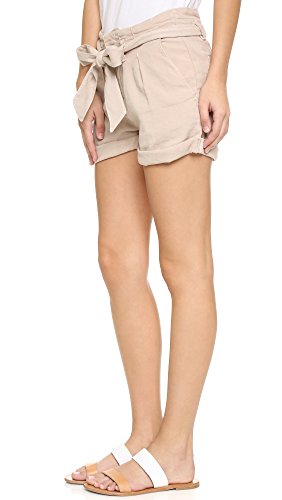 Casual Joie shorts with a pleated paper-bag waist. Rolled cuffs. Self-belt. Slant hip pockets and welt back pockets. Hook-and-eye closures and zip fly.