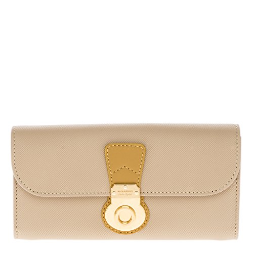 Binding : Apparel Product Description Burberry Womena€TMs Two Tone Trench Leather Continental Wallet Tan: A two-tone continental wallet crafted in our Trench Leather and detailed with a distinctive metal lock closure. The timeless style is designed with card slots and multiple compartments for coins, notes and receipts. Foldover top with lock closure. 14 card slots. Zip coin compartment. Internal note compartment. Two expandable compartments, two slip pockets. Engraved Burberry lettering at closure. Made in Italy. Outer: 100% calf leather. Approximately: 7.9a€ W x 3.9a€ H x .5a€ D. 0