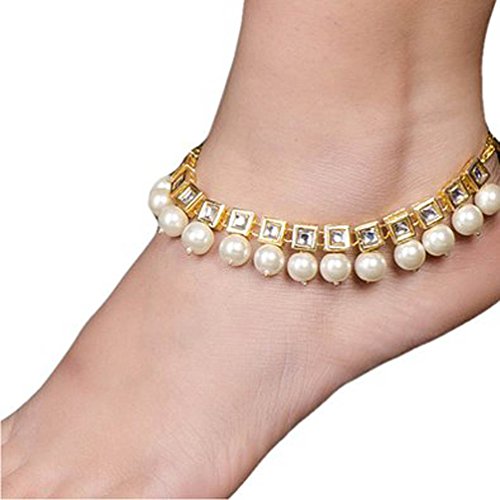 -. Title : インドの伝統的なKundan Payalゴールドトーンアンクレットブライダルジュエリーパールビーズ
