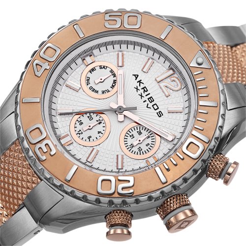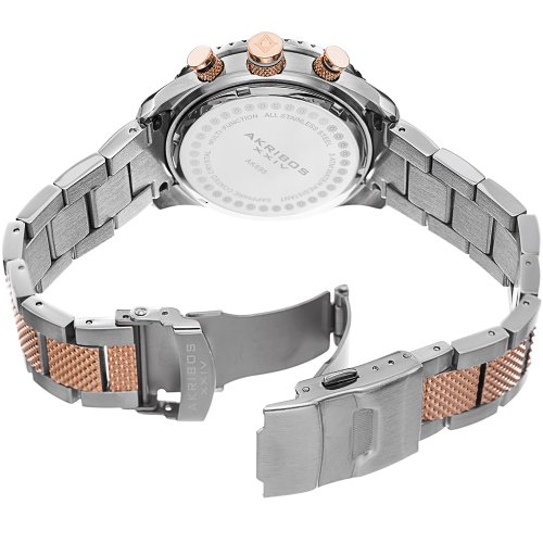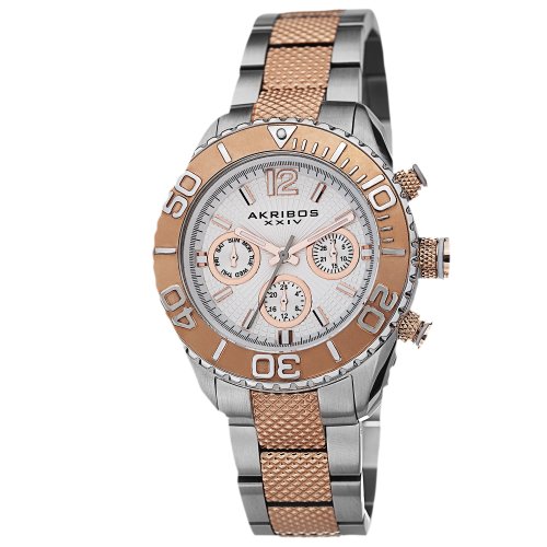 -. Title : Akribos XXIV Women's AK695TTR Ultimate Swiss Quartz Multifunction Silver-tone and Rose-tone Stainless Steel Bracelet Watch