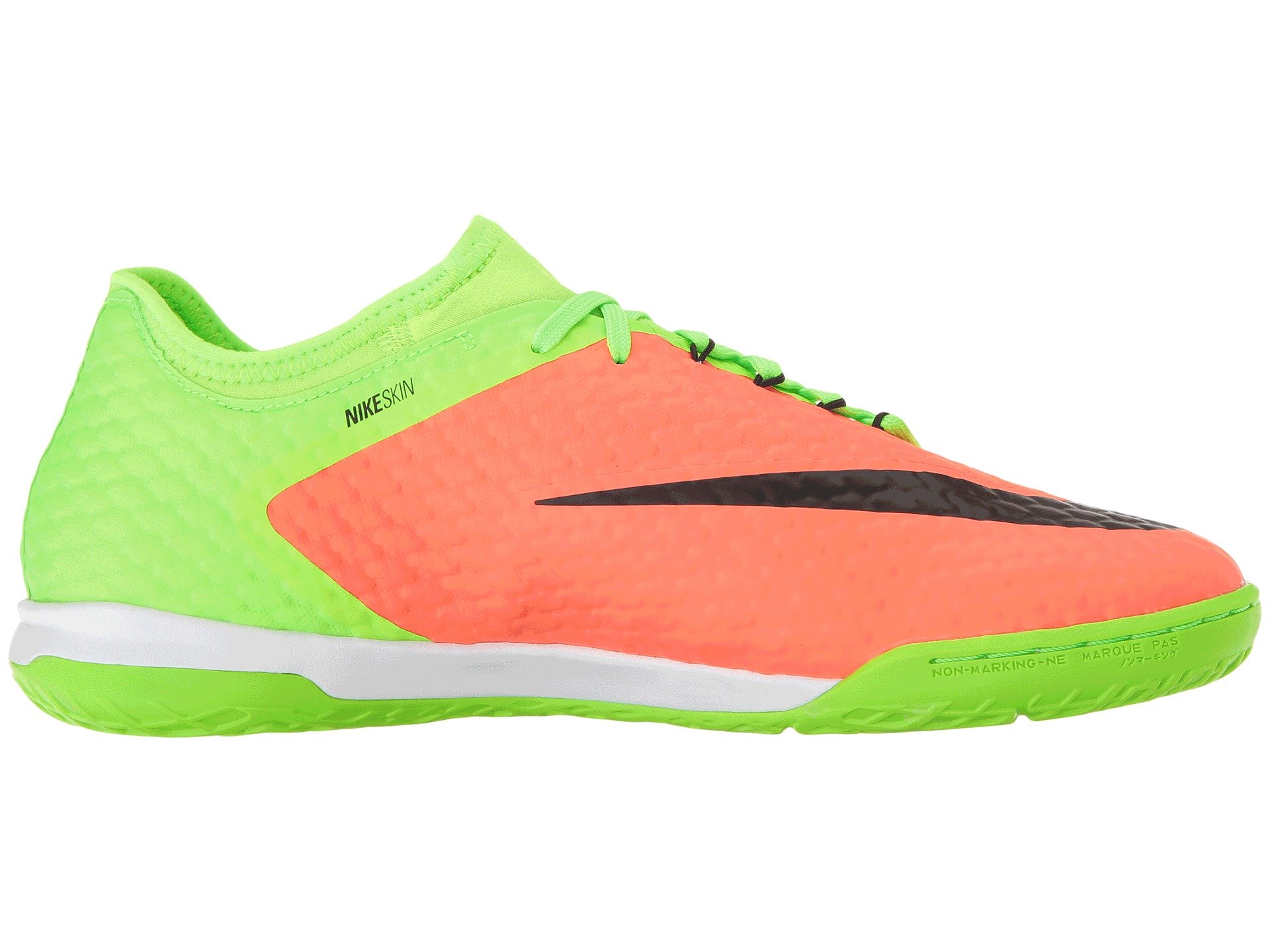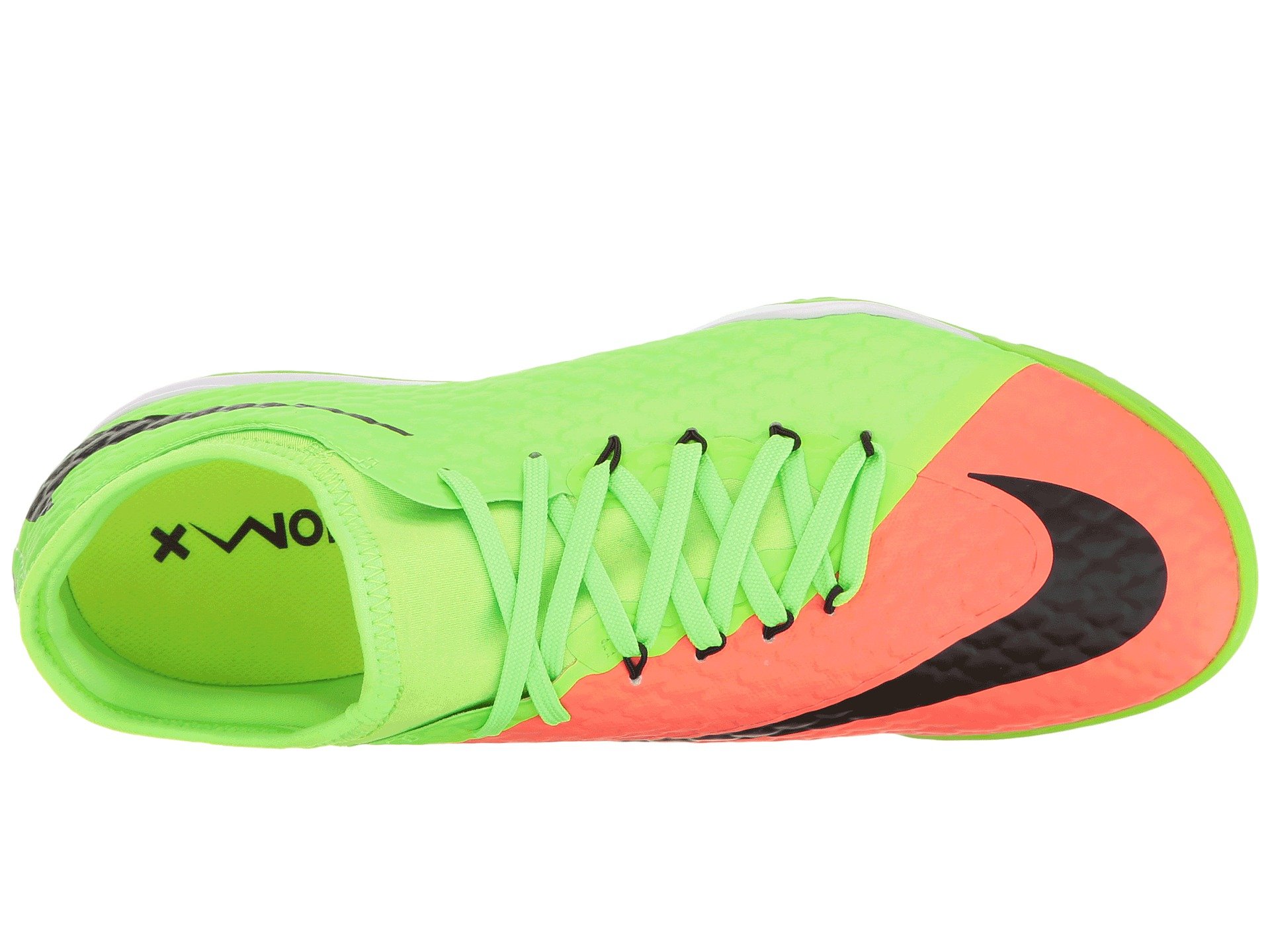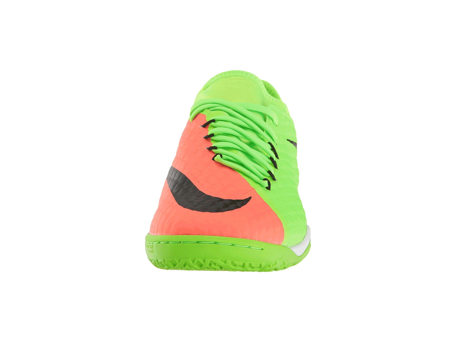 | Product Information SKU: #8790039Control the ball, control the game. Gear up in the high performance of the Nike? HypervenomX Finale II IC soccer shoe!Uppers made of coated mesh and textile. Textured upper provides enhanced touch. Asymmetrical lacing expands the strike zone for better ball contact. Dynamic Flywire cables built into the lacing help securely lock down the foot. Lace-up closure. Bootie construction. Neoprene collar conforms to the foot for flexibility and custom comfort. Comfortable textile lining offers a great in-shoe feel. Thin foam insole. Nike Zoom Air unit provides low-profile, responsive cushioning. Indoor/Court (IC) outsole delivers optimal traction on the street, court, and on indoor surfaces.Imported. Product measurements were taken using size 10, width D - Medium. Please note that measurements may vary by size.Weight of footwear is based on a single item, not a pair.Measurements: Weight: 10 oz |