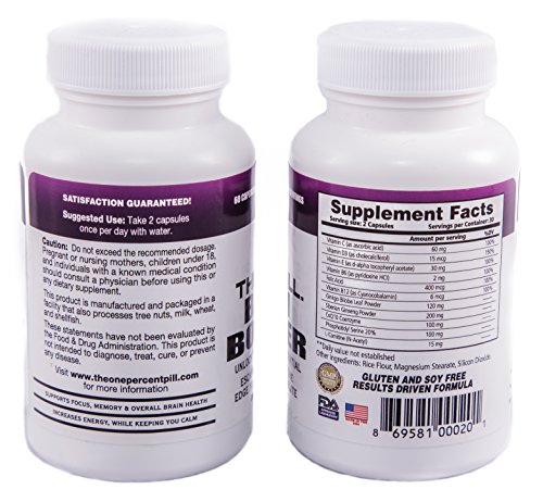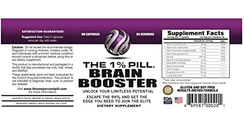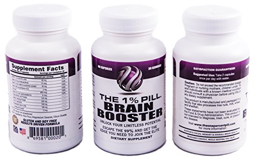 The 1% Pill - Brain Booster - Supports Memory, Focus, Energy, Overall Brain Health & Performance - Money-Back Guarantee - See Our Ingredients, Compare...