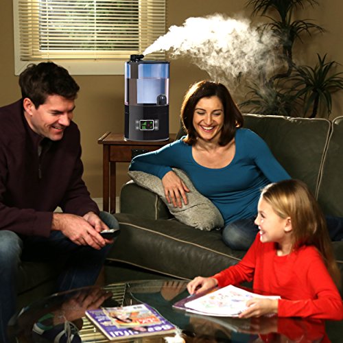 - EASY TO READ digital led display includes five mist settings, adjustable humidistat & auto off timer