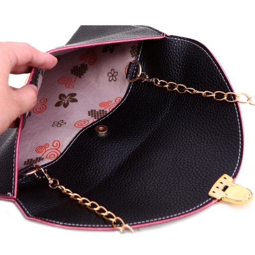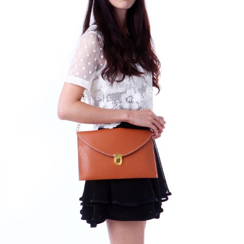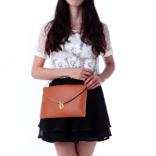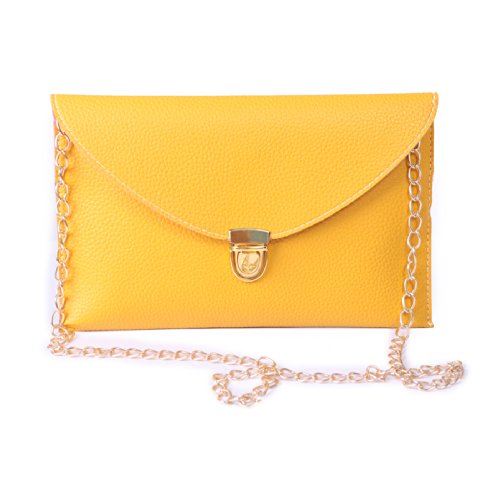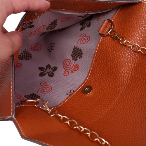 -. Brand : HDE -. ClothingSize : One Size -. Department : womens -. Feature : Woven inner lining protects your belongings / Flat and lightweight is easily carried, with plenty of space for your phone, wallet, cosmetics, and all your basics / Gold front buckle closure with magnetic inner seal offers double protection / Golden chain shoulder strap; measures 48 in (121 cm) long / Dimensions: 11.15 x 7.25 in (28.3 x 18.42 cm) -. Label : HDE -. Manufacturer : HDE -. ProductGroup : Shoes -. ProductTypeName : HANDBAG -. Publisher : HDE -. Size : One Size -. Studio : HDE -. Title : HDE Fashion Leather Envelope Clutch with Drop-in Chain Shoulder Strap
