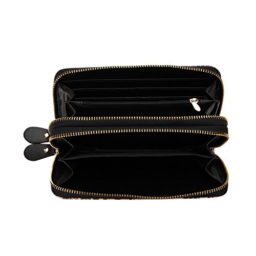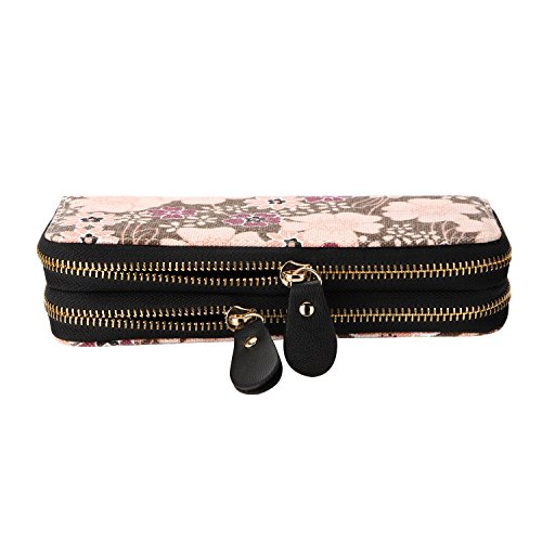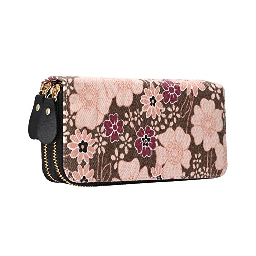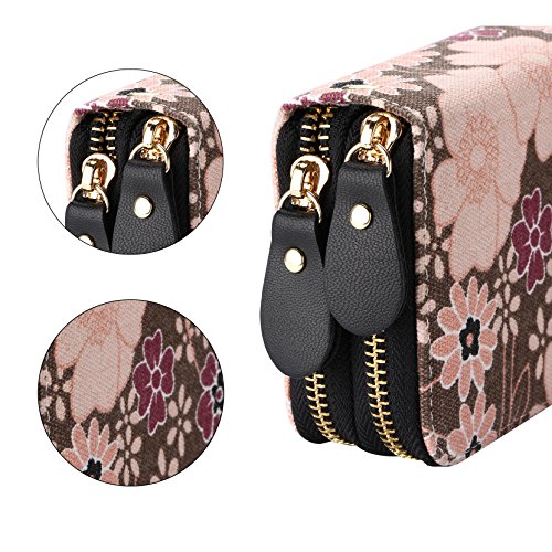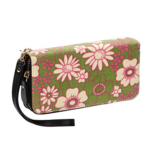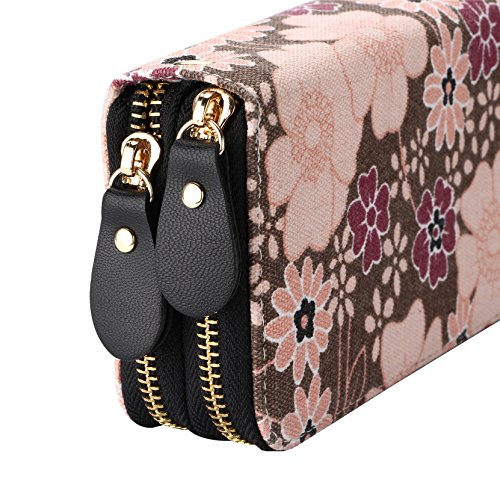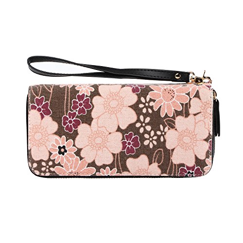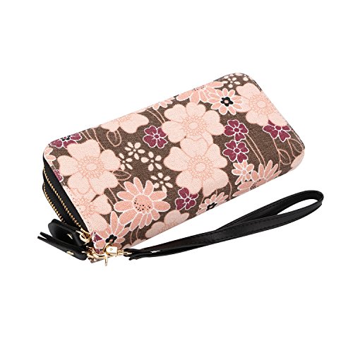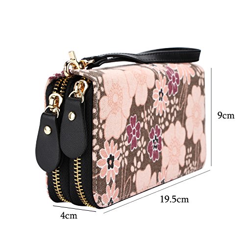-. Title : Vintage Floral Wallet Large Capacity Zipper Card Holder Clutch Purse with Strap