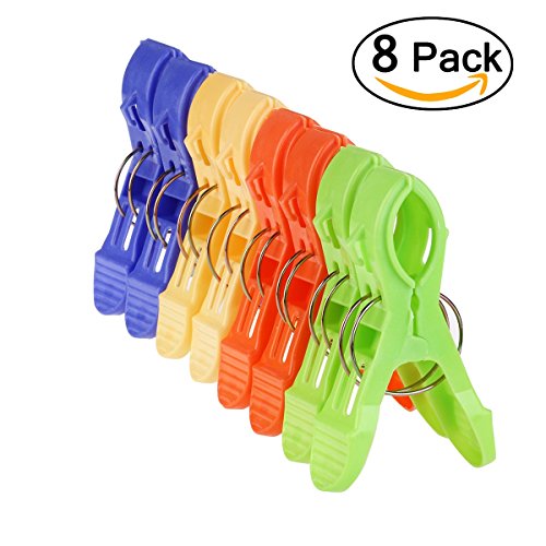 Beach Towel Clips Jumbo Size for Beach Chairs/Pool Lounges/Cruise Plastic Towel Clamp Clip Holder-Keep Your Towel,Clothes,Quilt,Blanket from Blowing Away,Bright Colors Clothes Lines(8 Pack)