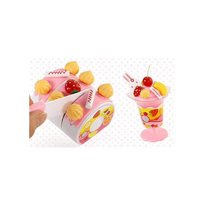 케익은 매직 테이프에 이어져 있으므로 부속 부엌칼 장난감으로 잘라 놀 수 있습니다.
