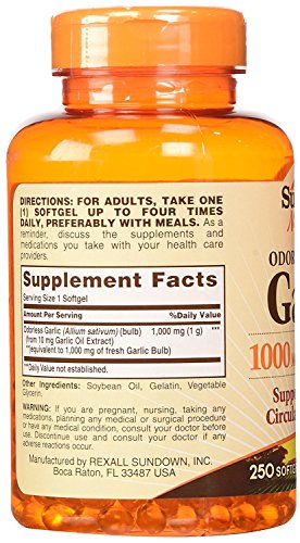 -. Title : Rexall Sundown Naturals, Odorless Garlic, 1,000 mg, 250 Softgels - 2pc