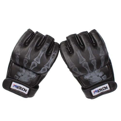 -. Feature : Hand Boxing Gloves / Black with Skeleton Ghost Design / PU Leather for Durability