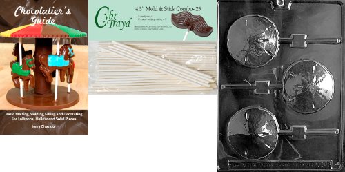 Cybrtrayd 'Sand Dollar Lolly' Nautical Chocolate Candy Mold with 25 4.5-Inch Lollipop Sticks and Chocolatier's Guide