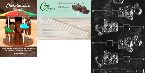 Cybrtrayd 45St50Bk-E079 'Duck Lolly' Easter Chocolate Candy Mold with 50 4.5-Inch Lollipop Sticks and Chocolatier's Guide
