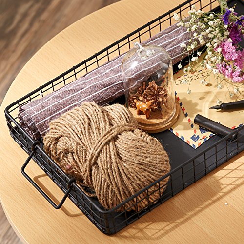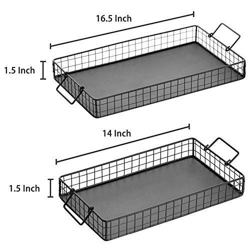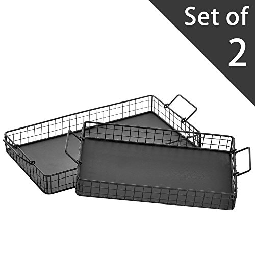 Black Metal Wire Nesting Serving Trays, Decorative Storage Baskets with Handles, Set of 2