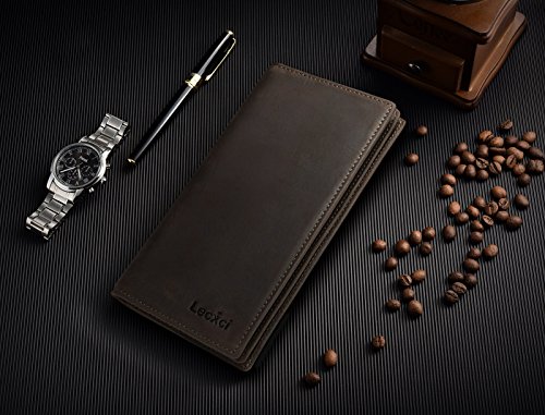 -. Title : Lecxci Mens RFID Blocking Soft Vintage Leather Long Bifold Wallet with ID Window