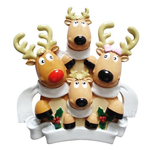 PERSONALIZED CHRISTMAS ORNAMENTS FAMILY KIT-REINDEER FAMILY 4 W/SCARVES KIT