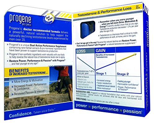 -. Feature : CLINICALLY PROVEN TESTOSTERONE PRECURSORS -- Naturally increase production with the foundational ingredients needed to produce more testosterone. Powerful ingredients cleared by the FDA (but banned by pro-sports) to help support faster protein synthesis/muscle development, increased metabolism / fat burning rates, more natural / sustainable all-day energy and more! / DOCTOR RECOMMENDED -- Progene® is the ONLY brand with a national network of healthcare professionals who recommend Progene® as a natural alternative to synthetic, prescription testosterone. Exclusively formulated with scientifically driven ingredients and the input of pharmacists, naturopaths and biochemists. / SCIENCE DRIVEN -- The ONLY brand in the country with clinical grade testing capabilities, allowing you to actually measure levels before & after (search Amazon for "Testosterone Test Kits"). Additionally, Progene® is the ONLY brand in the country sponsoring on-going, national testosterone research. / NATURAL, SAFE & TRUSTED -- A safe & effective formula for over 15 years (3-5x longer than most supplement companies) comP.R.Ised of over 30 ingredients - botanical extracts, amino acids, phytosterols, vitamins and minerals known to support the production of increased testosterone. NO preservatives. NO animal products. NO GMO's. Made in the USA at cGMP regulated facilities. / NO FENUGREEK OR TESTOFEN® -- This ingredient has been used for centuries by BREASTFEEDING MOTHERS to increase lactation & breast size... decide for yourself if this is what you want.