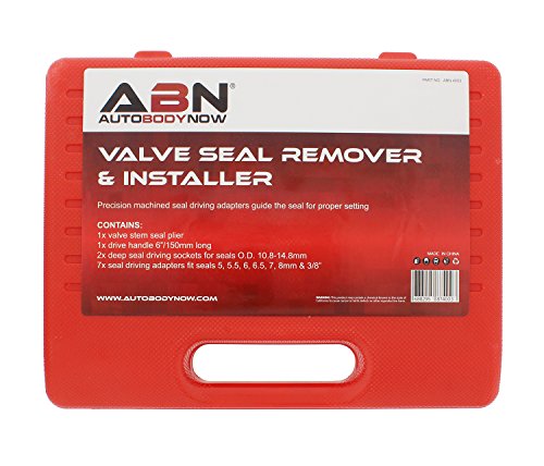 Practical: Use the ABN Valve Stem Seal Remover and Installer 11-Piece Tool Kit with Carrying Case – Pliers, Drive Handle, Sockets, Adapters to pull old valve seals and install new seals on overhead camshaft engines