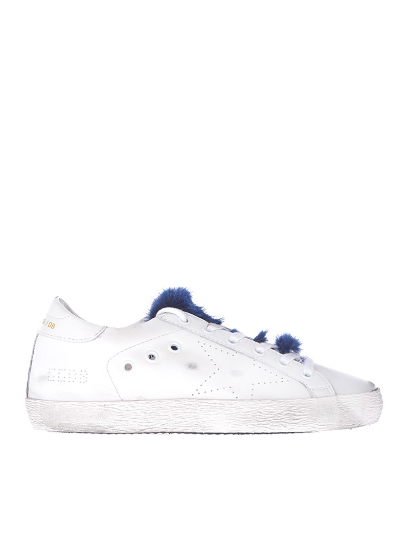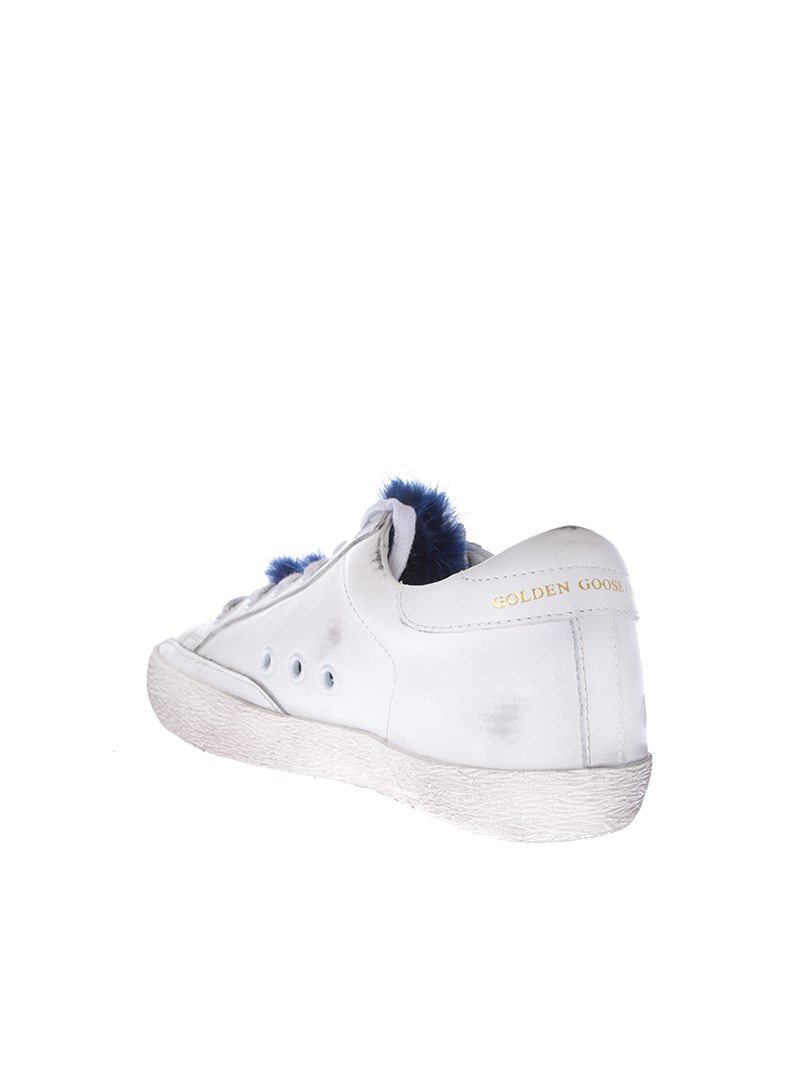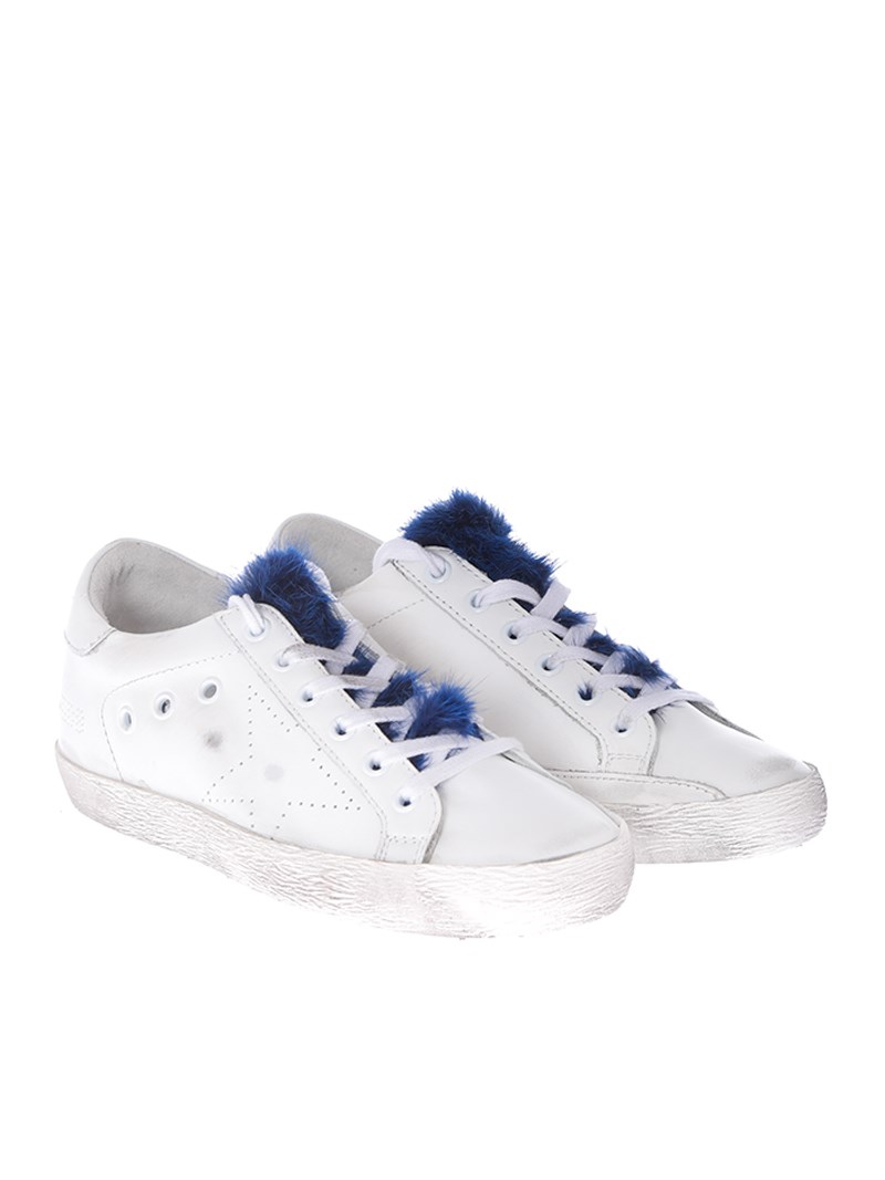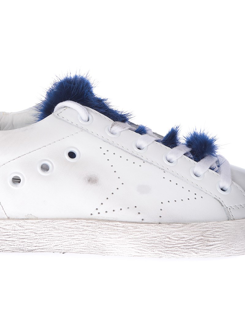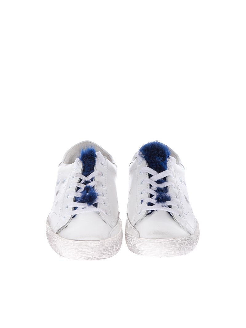 Leather sneakersColor: whiteBlue fur insertRubber sole