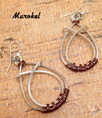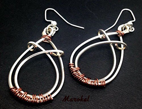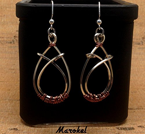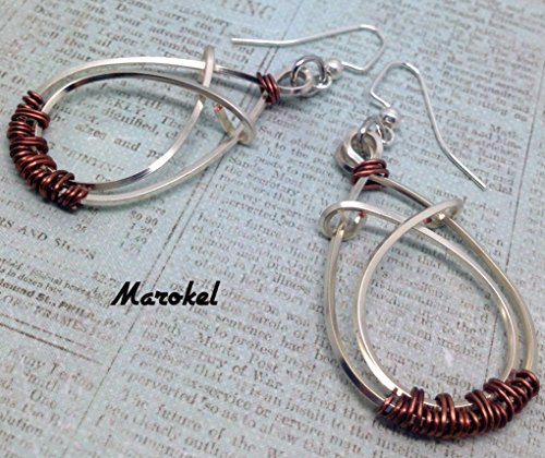 -. Title : Double Curved Silver Earrings Wire Wrapped Silver Square Wire Minimalist Abstract Oxidized Copper Delicate Summer Earrings Crossover