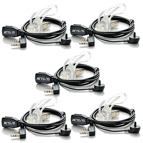 Retevis Covert Air Acoustic Tube Headset Earpiece 2 Pin PTT Mic for Kenwood PUXING Baofeng UV-5R UV-5RA 888S Retevis H777 RT7(5 Pack)