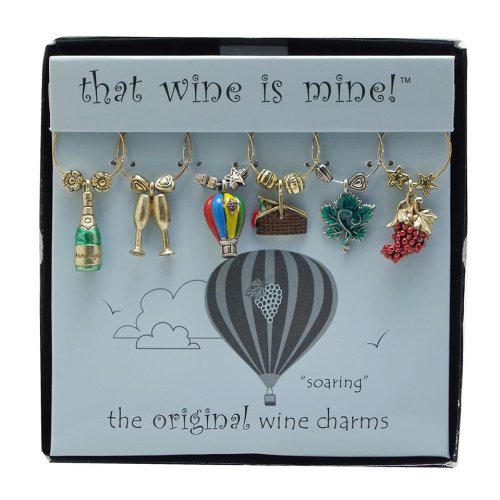 -. Feature : That Wine is Mine, the original wine charms / Unique whimsical charms instantly individualize wine glasses by wrapping a loop around the stem / Sets of six hand cast pewter and hand painted charms / Elegant gift box / Choose from over 70 of different themes: wine country, wedding, girl stuff, tropical, animals, fun & games