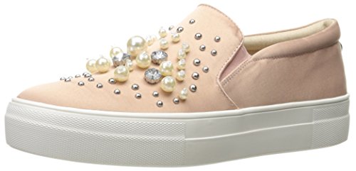 Product DescriptionA glam satin upper is unexpected and fresh on glamour's sporty slip on sneaker. pearl detailing makes for a pretty and playful sneaker0