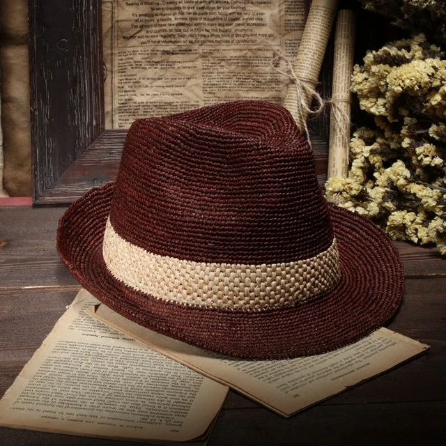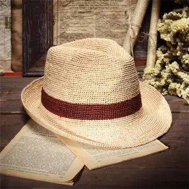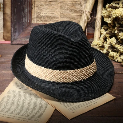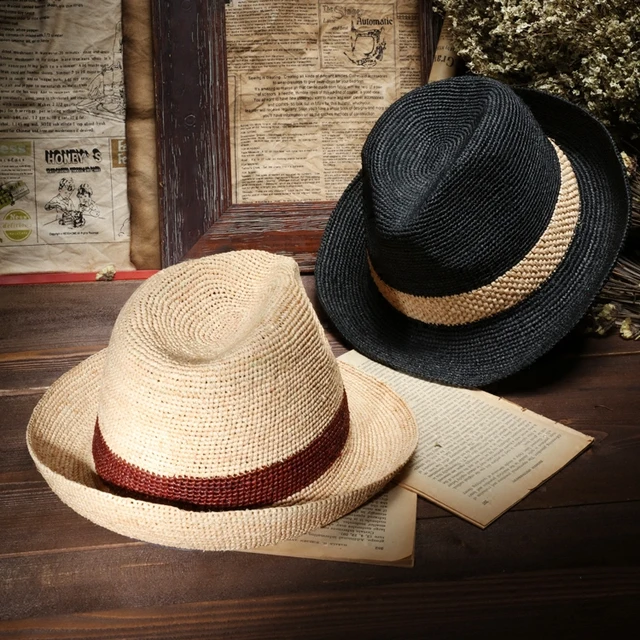 | [해외]2017 여름 남성 파나마 모자 수제 크로 셰 뜨개질 라피아 페도라 밀짚 모자 재즈 모자 비치 모자 Chapeau Paille |