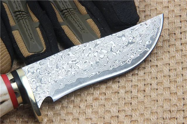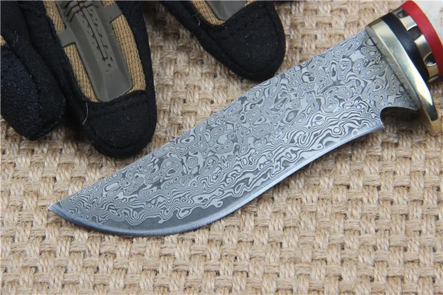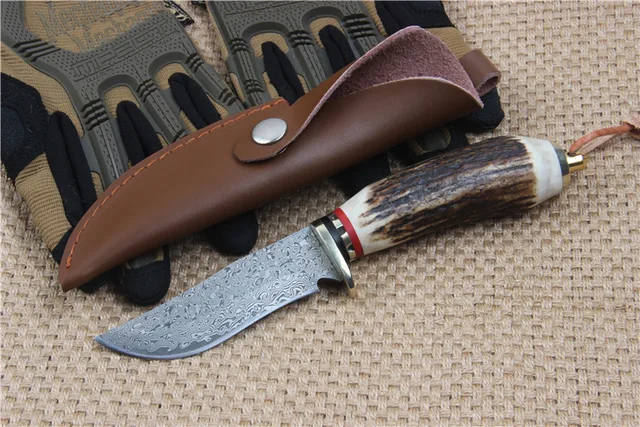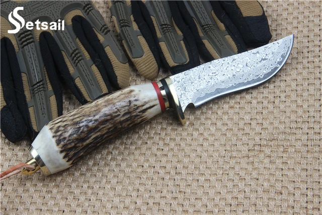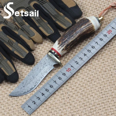 | [해외] Setsail 직선 칼 다마스커스 컬렉션 사냥 칼 고정 블레이드 뿔 핸들 생존 전술 야외 캠핑 나이프 선물 |