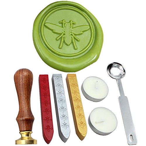 FQL Bee Vintage Rosewood Wax Seal Stamp Set With Gold Red Silver Sticks