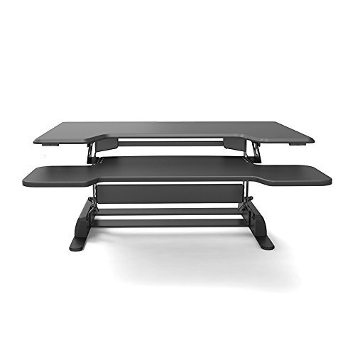 -. Feature : A MONITOR STAND FOR ANY HEIGHT YOU WANT. If you're getting on the stand-up-desk health trend then our riser gives you the perfect way to get the many benefits of this movement without needing to invest in an entirely new desk. The adjustable height mechanism has 6 different levels, letting you choose between a leaning chair or even just outright standing at the top level. The riser system is ergonomic and allows for virtually anyone to experience the health benefits of standing while working. / IMPROVE CIRCULATION, BOOST PRODUCTIVITY AND REDUCE BACK PAIN . Scientists are absolutely fascinated with studying the benefits of stand-sit desks . Some of the most recent studies show that using an adjustable desktop can actually improve chronic back pain and may even help with a wealth of other problems like obesity, high blood sugar, and they may even help lower the risk of heart disease. Of course you don't have to stand up all day; you can take a break and sit, stand, or just lean with it! / A STURDY BUILD FOR HEAVYWEIGHT MONITORS. If you're in any way associated with the modern workforce then you definitely have a need for two computer screens. With a weight limit of 44 pounds, you'll be able to load those jaw-dropping 4k dual monitors without worrying about whether your computer desk is going to collapse on you. Take your home office, regular office, or even gamer cave into the future with an incredibly sturdy workstation that gives you the foundation you need to work efficiently. / PLENTY OF ROOM FOR EVERYTHING YOU NEED. You're going to have more than enough room for your files, folders, those papers with random pictures you drew during a meeting, and that quirky coffee mug. Our large desk riser was designed with two tiers; two monitors fit on top, your keyboard and mouse fit on the lower level, and then your main desk is cleared for anything else you need. We even provide cable ties with our riser stand that let you organize your cables in a neat fashion. / THIS WILL CHANGE THE WAY YOU WORK! Designed to make the work day feel a little less monotonous by adding some variation, our height-adjustable desk riser gives you a great way to change things up using a conversion stand that lets you go from sitting to standing with the press of a button. This intelligently table topper even comes already assembled, meaning all you have to is set it on the table you want and you're ready to work.