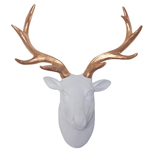 Animal Head Art Wall Decor Flocking Resin Deer Head With Gold Antlers For Wall Mount Decoration Size 10" x 12" x 5.5" By Smarten Arts